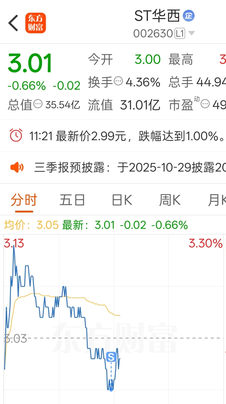$ST华西(SZ002630)$ 我不走它不会拉的,感激我吧兄弟们。爱你们呦。昨天最高点进今日最低点走。