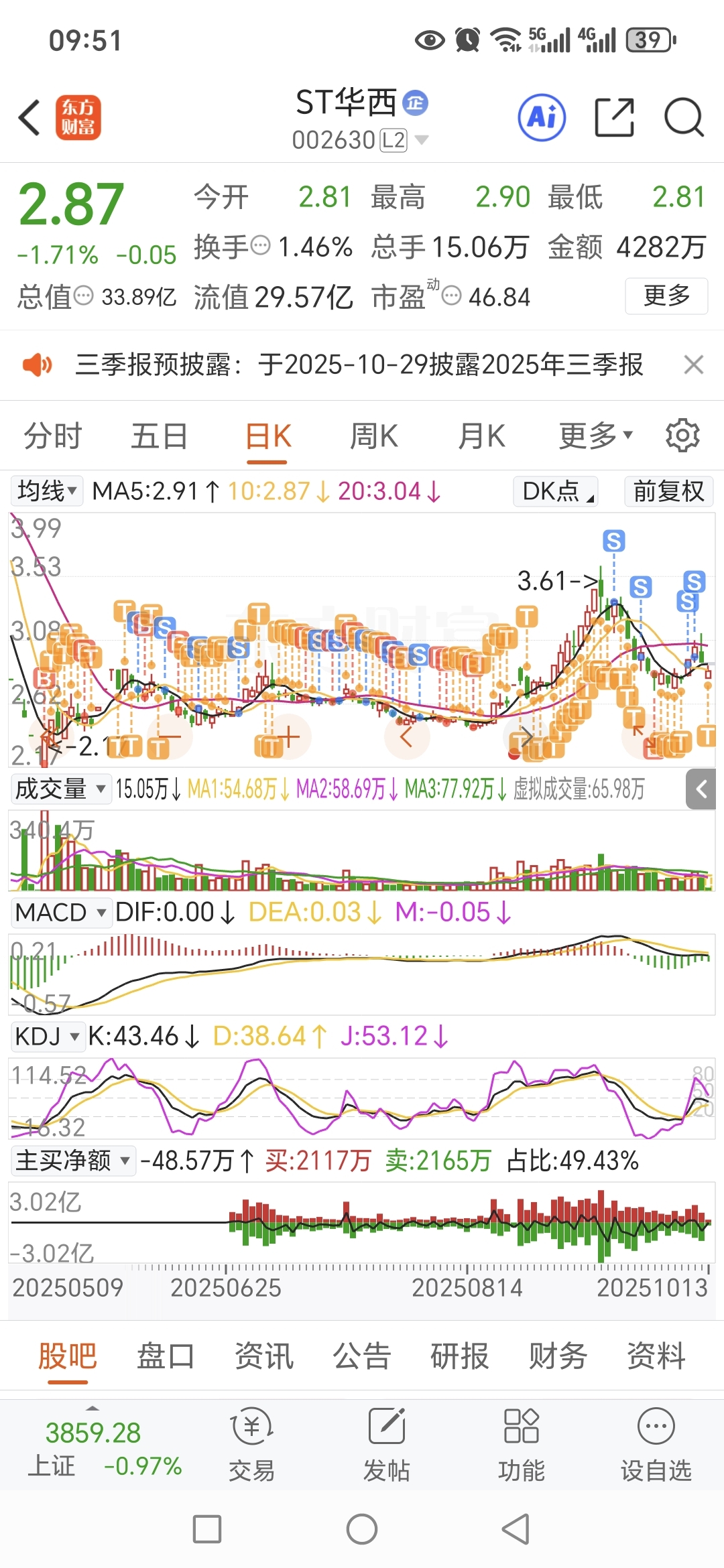 $ST华西(SZ002630)$ 不看多不看跌,你们不要我来捡,你们想要全拿去,我就是传说中的钉子户