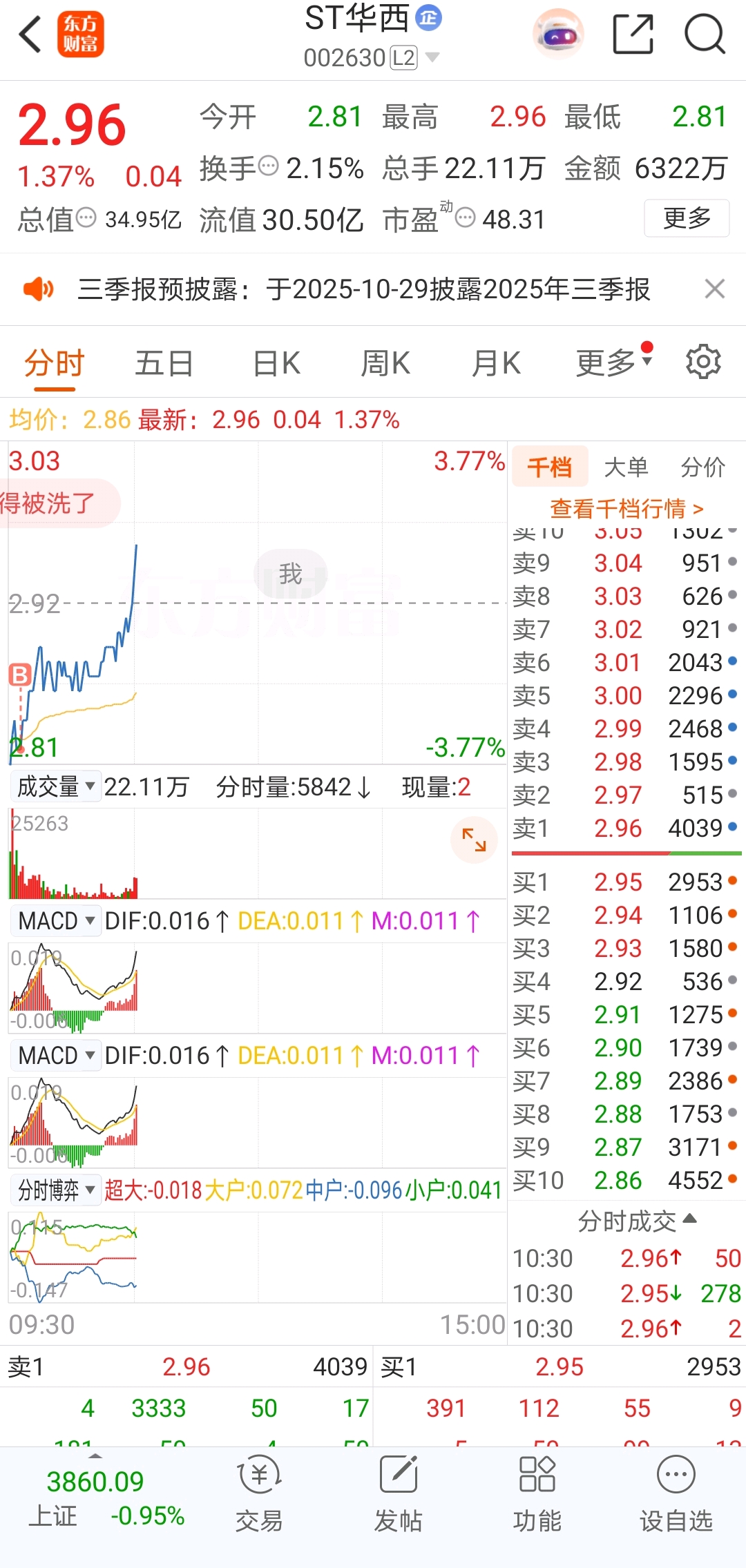 $ST华西(SZ002630)$ $*ST沐邦(SH603398)$ 华西加油,大盘不好的时候,就是机会,大V们赶紧放弃高风险的木棒子,来一起干华西吧!!雪球大佬太多了!!