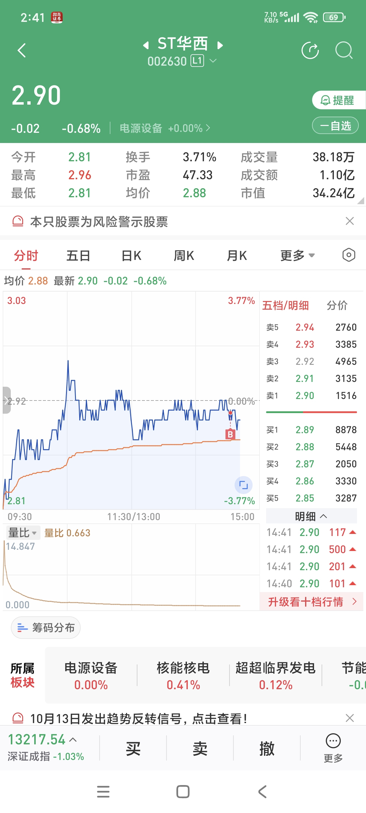 $ST华西(SZ002630)$ 难受,这边买,这边就下去