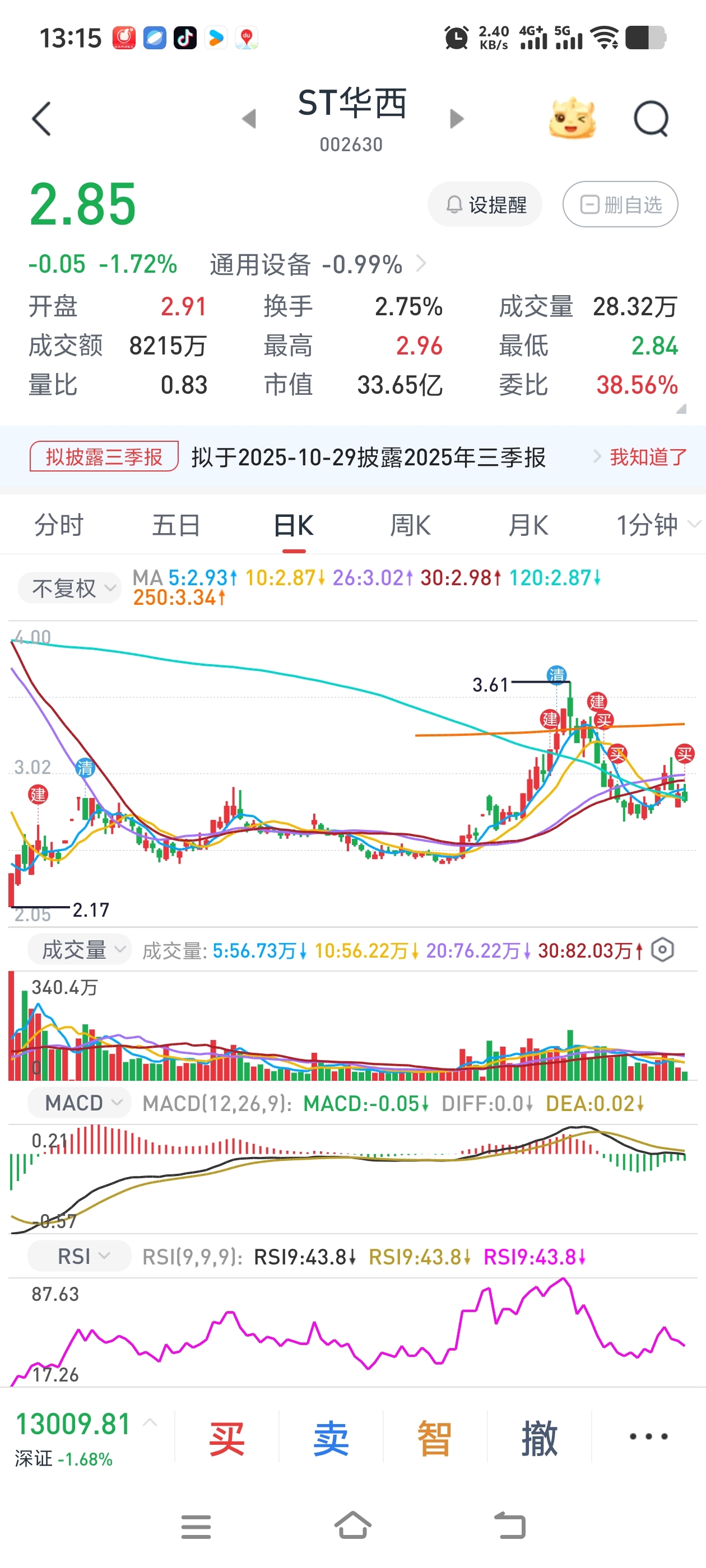 $ST华西(SZ002630)$ 285再补一次