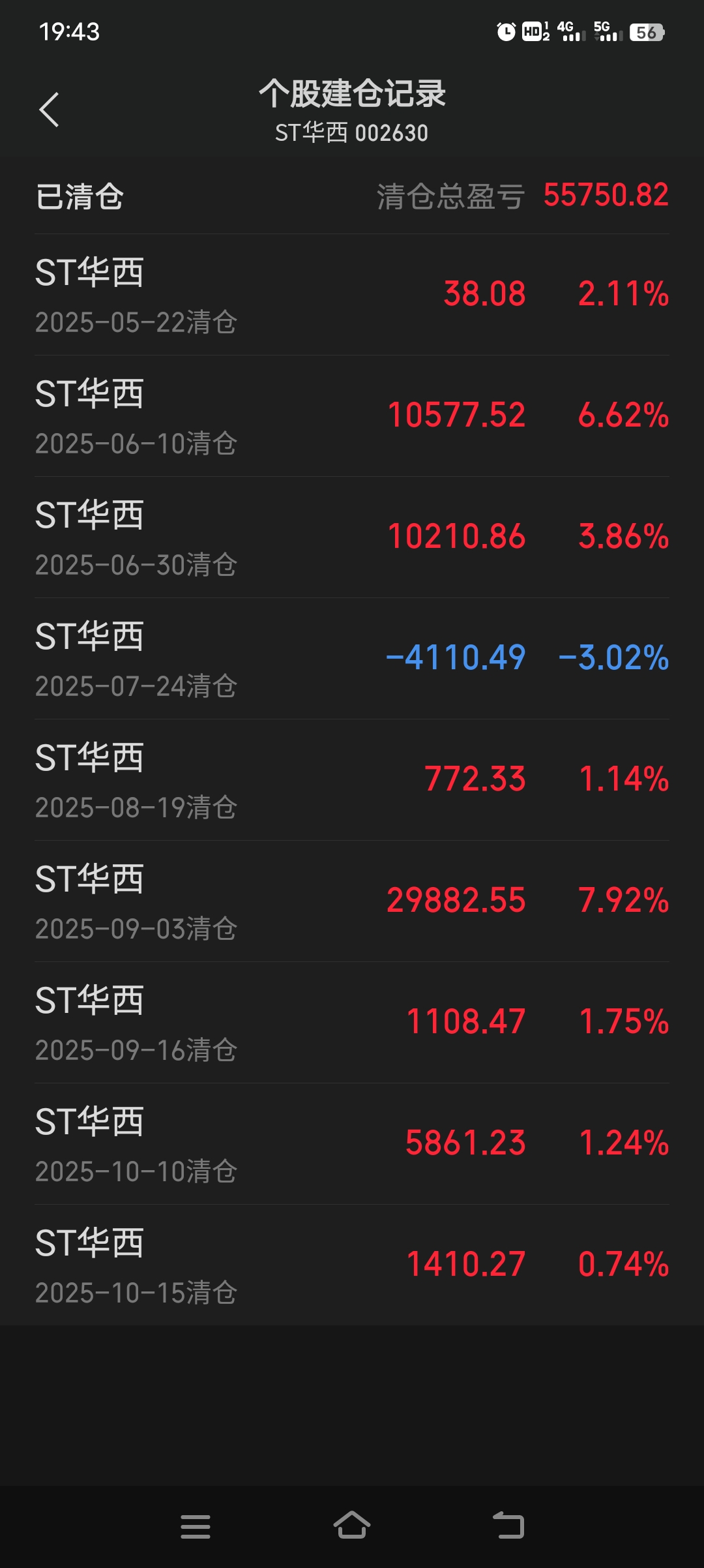 $ST华西(SZ002630)$ 感谢华西。今天清仓了,转战其他st了。