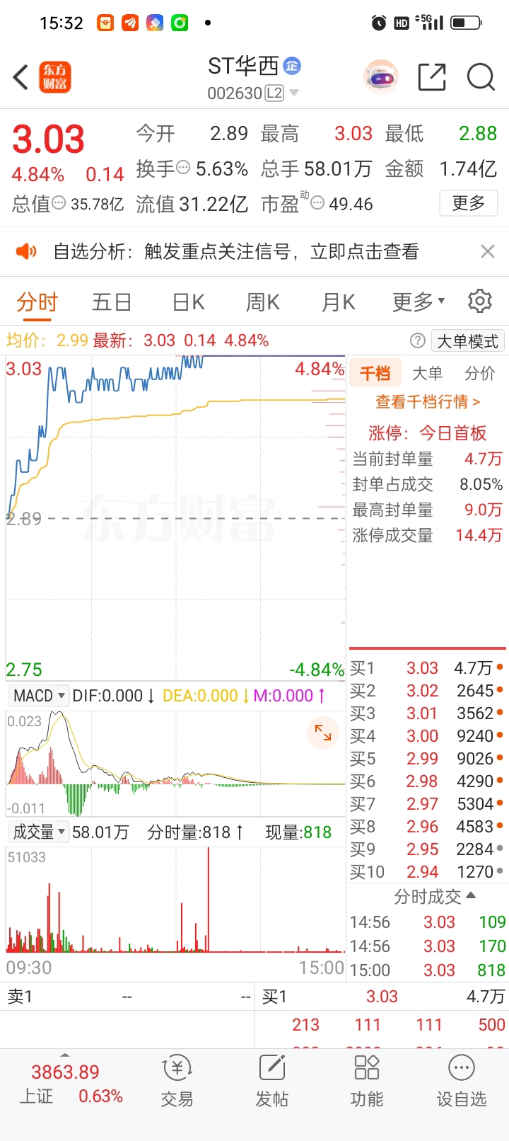 看到华西涨停了,我也不想多说了。涨起来就耐心持股恭喜大家赚钱。