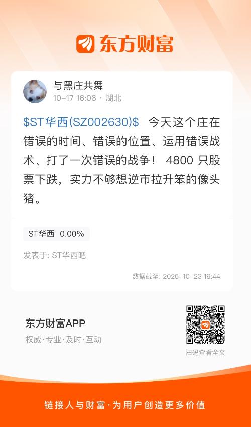 $ST华西(SZ002630)$ 今天这个庄在错误的时间、错误的位置、运用错误战术、打了一次错误的战争! 4800 只股票下跌,实力不够想逆市拉升笨的像头猪。
