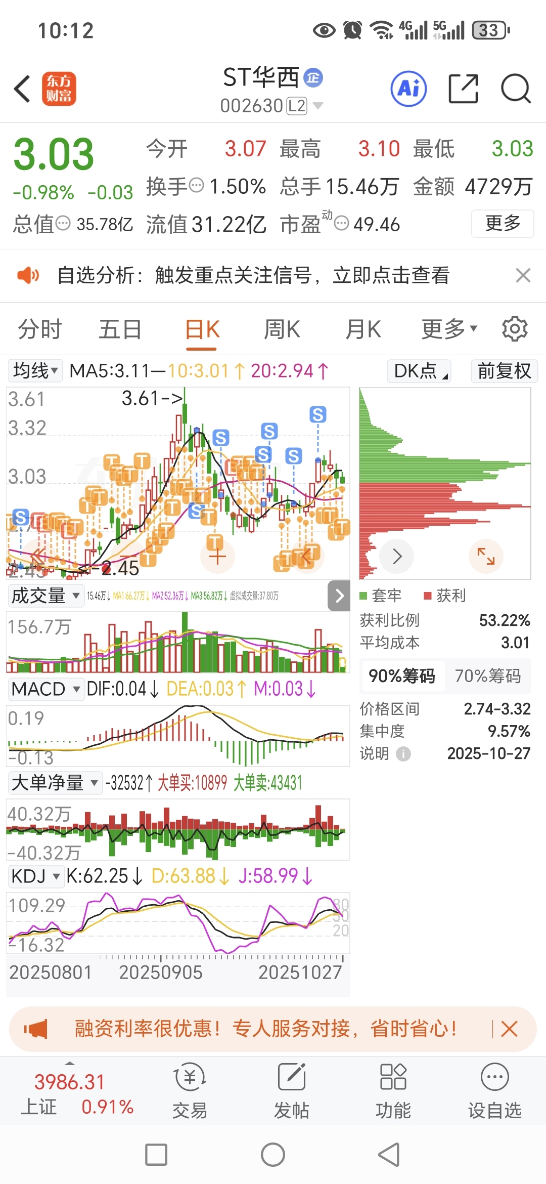 $ST华西(SZ002630)$ 2分钱已到手,主力明天继续跌