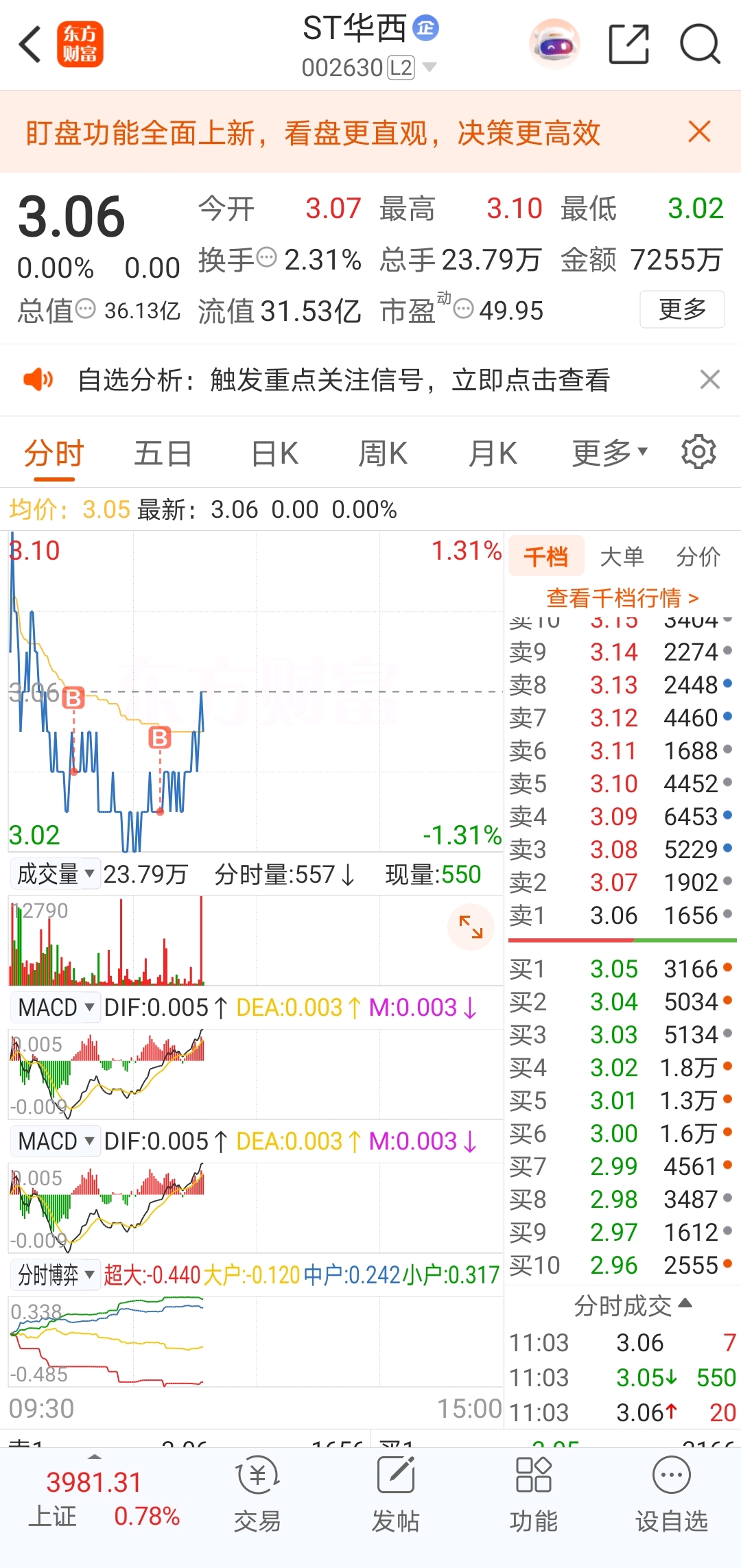 $ST华西(SZ002630)$ $*ST沐邦(SH603398)$ 今天有点无聊,那就买华西,年底了防守反击,明天晚上三季报,沐邦和华西,我还是选择华西,安全第一