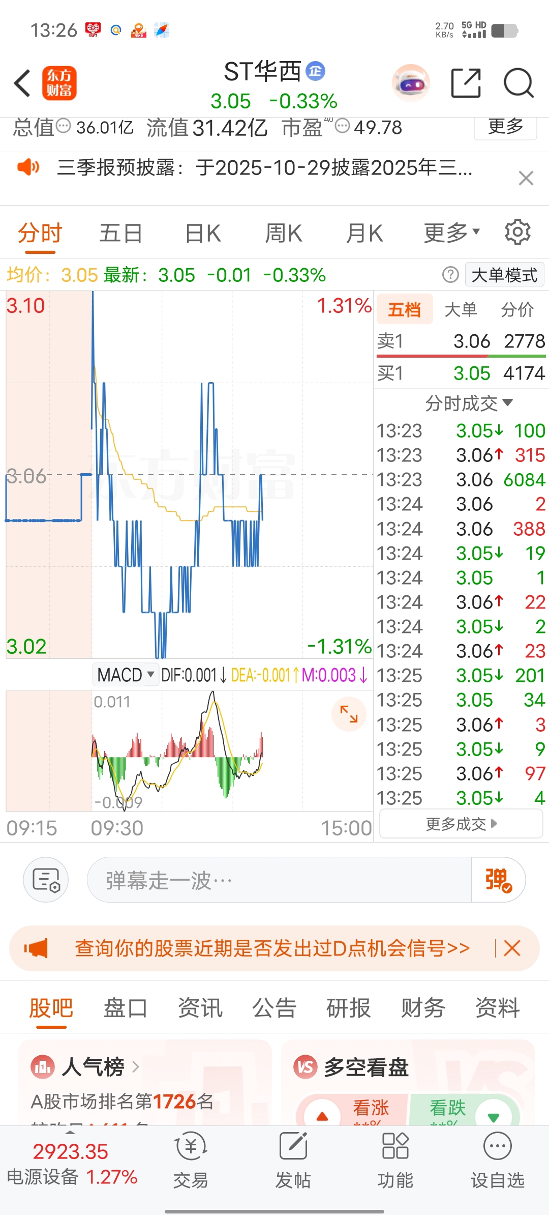$ST华西(SZ002630)$ 3.06刚上去,一个6084就砸盘