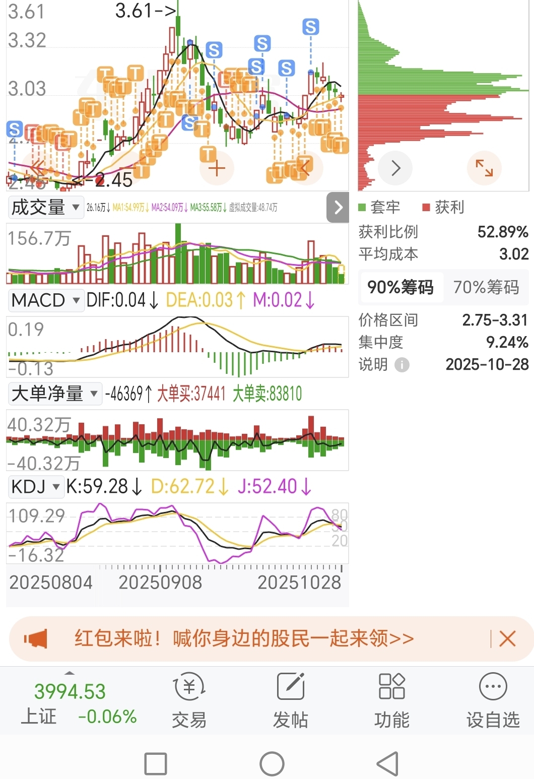 $ST华西(SZ002630)$ 感谢主力的跌,又赚2分钱,主力我要跟你比成本