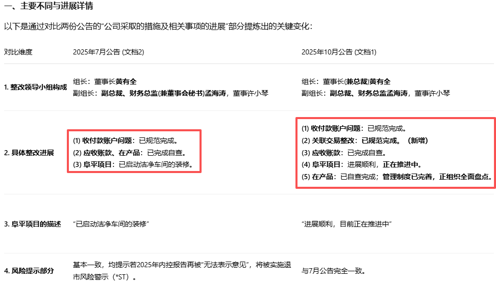 华西7月与10月相关事项进展对比