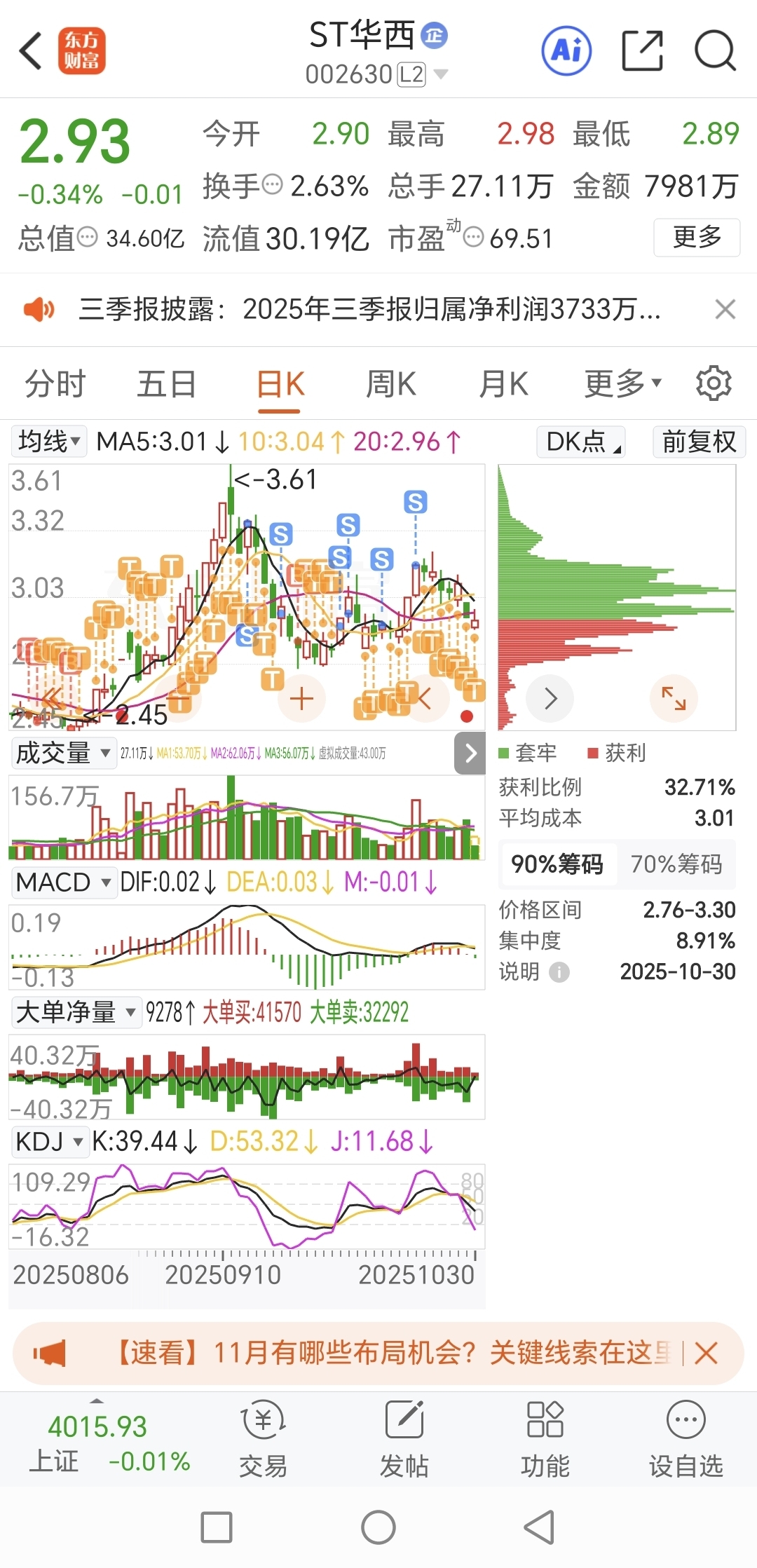 $ST华西(SZ002630)$ 有人说我华西跑路了,证明一下,每天T,不会跑
