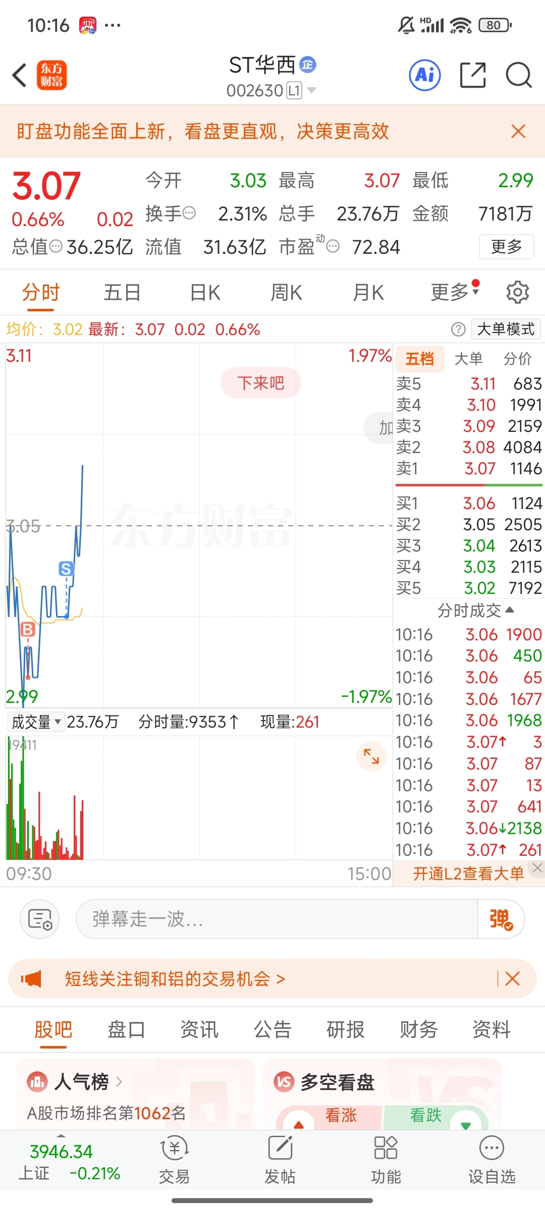 $ST华西(SZ002630)$ 拿不住,低价卖了些
