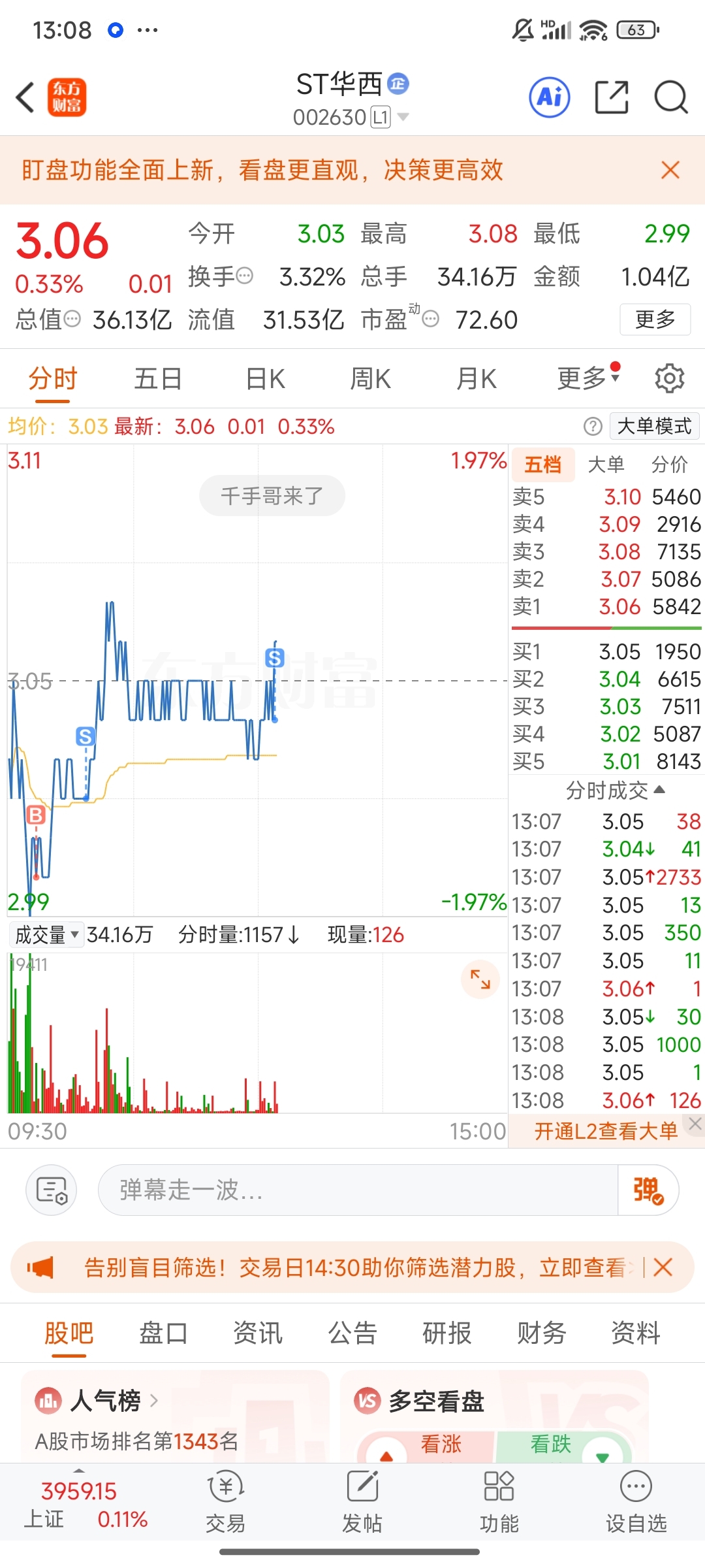 $ST华西(SZ002630)$ 刚卖,就涨2分