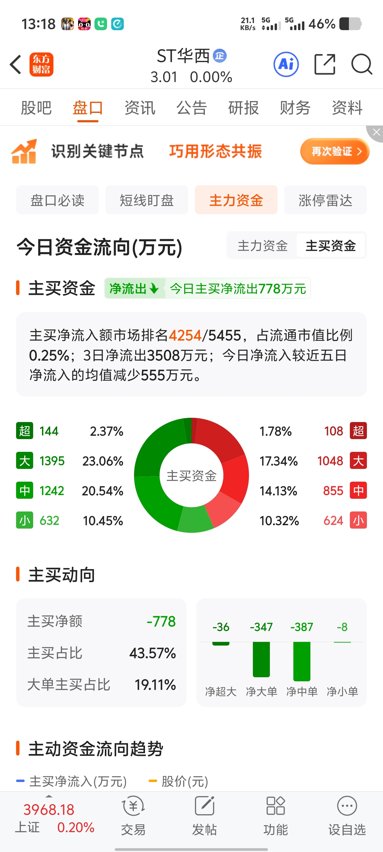 $ST华西(SZ002630)$ 你们买他抛主力资金流出