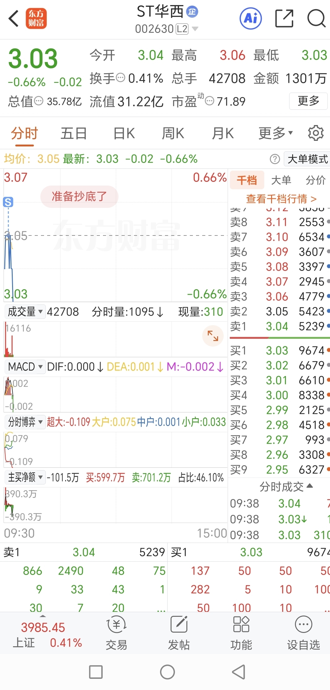 $ST华西(SZ002630)$ 多少卖,散户,我做T至少三分钱,自己看着办