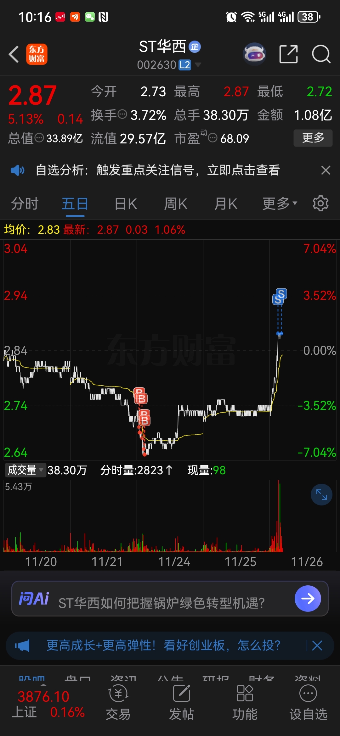 $ST华西(SZ002630)$ 不知道是不是涨停板洗盘,但保守起见还是先出一半!