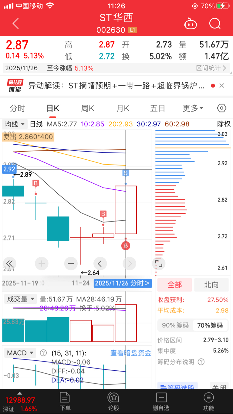 $ST华西(SZ002630)$ 昨天满仓 今天出了三分之一 明天低开就补 涨停就追。