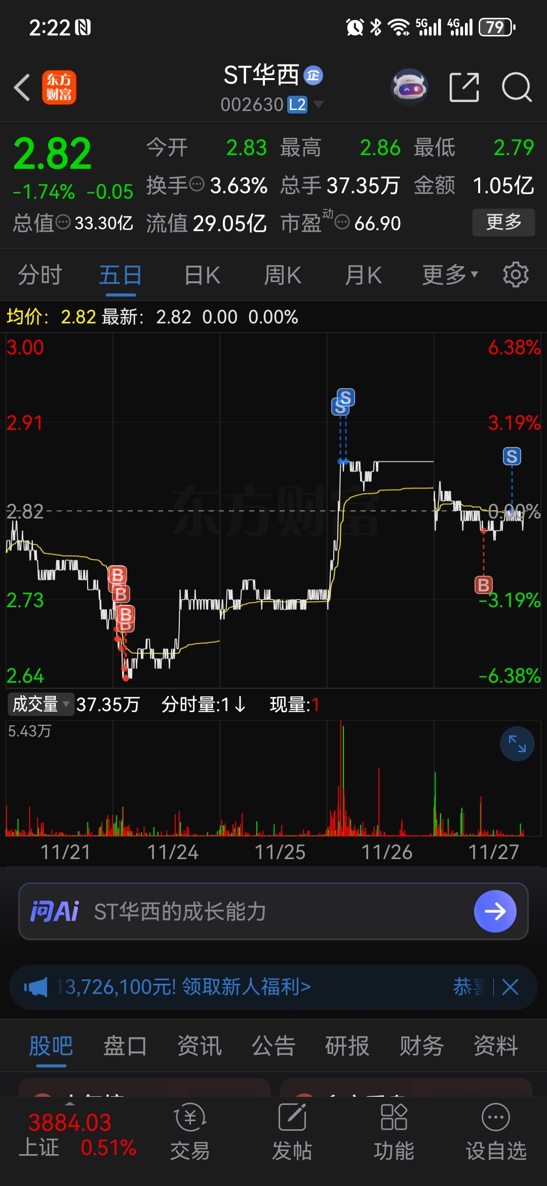 $ST华西(SZ002630)$ 我卖了,你可以涨了!