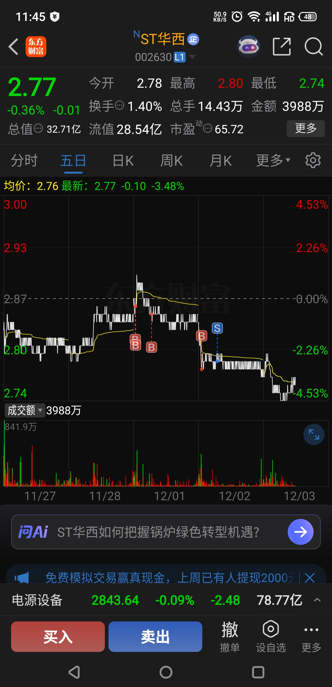 $ST华西(SZ002630)$ ST板块下行,再好的股也白搭,重仓被套!