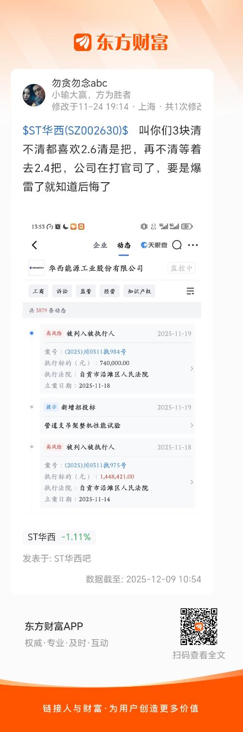 $ST华西(SZ002630)$ 叫你们3块清不清都喜欢2.6清是把,再不清等着去2.4把,公司在打官司了,要是爆雷了就知道后悔了