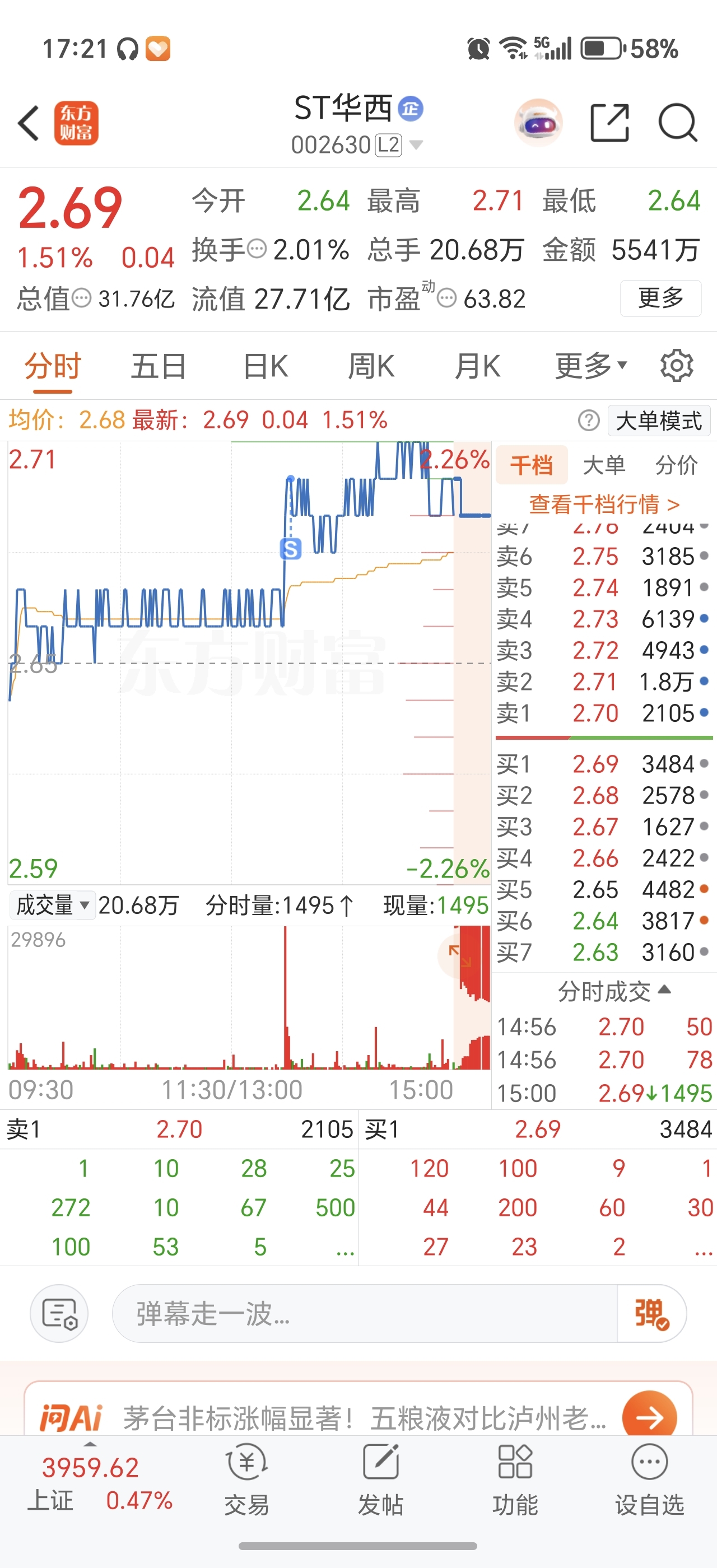 $ST华西(SZ002630)$ 明天可以涨停了 不用在乎我的感受