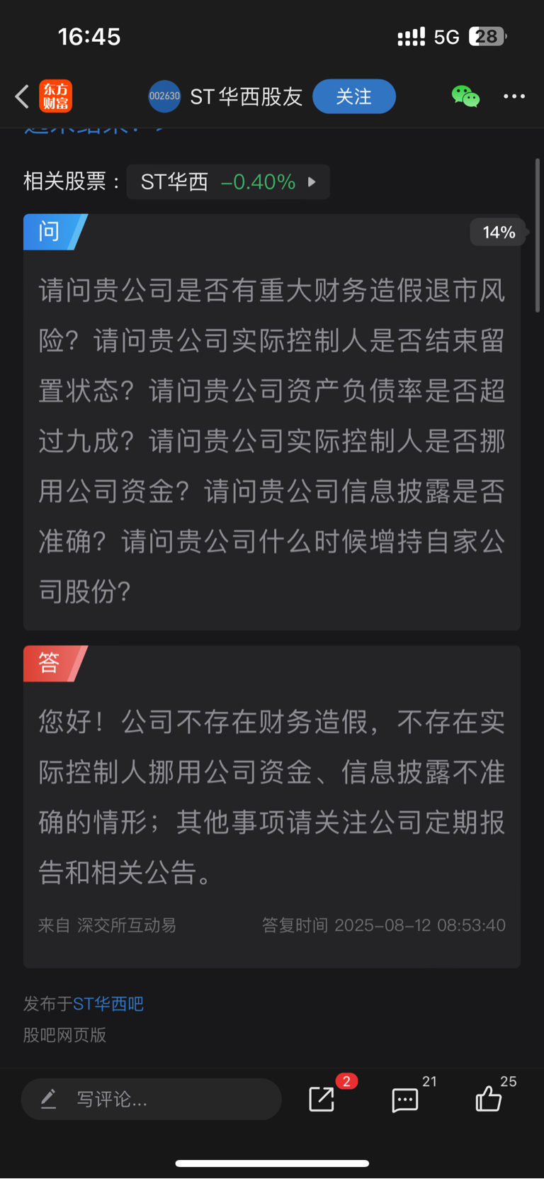 董秘回复的关于立案,财务造假,资金占用,信息披露不准确)董秘~董事长回复的。含金