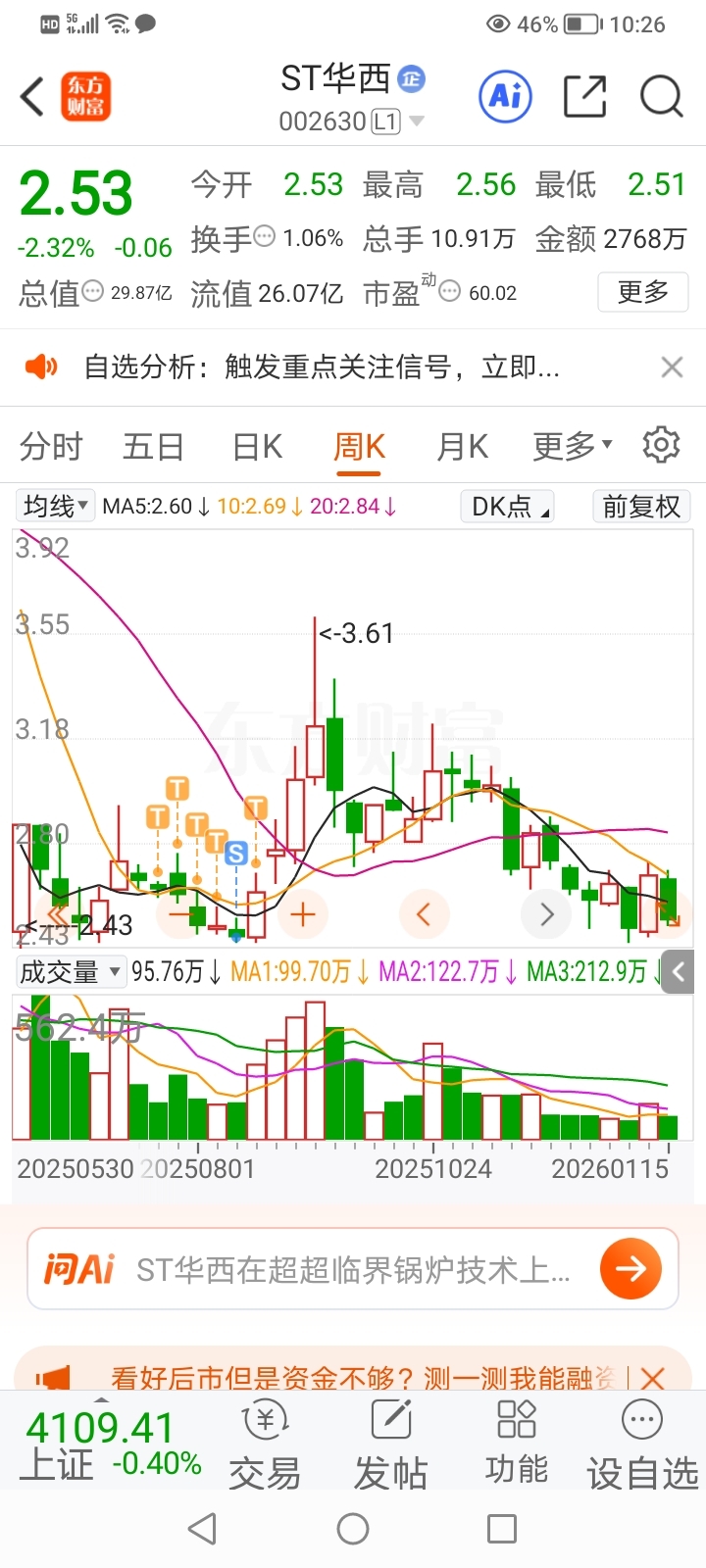 $ST华西(SZ002630)$ 托单必须的跌。