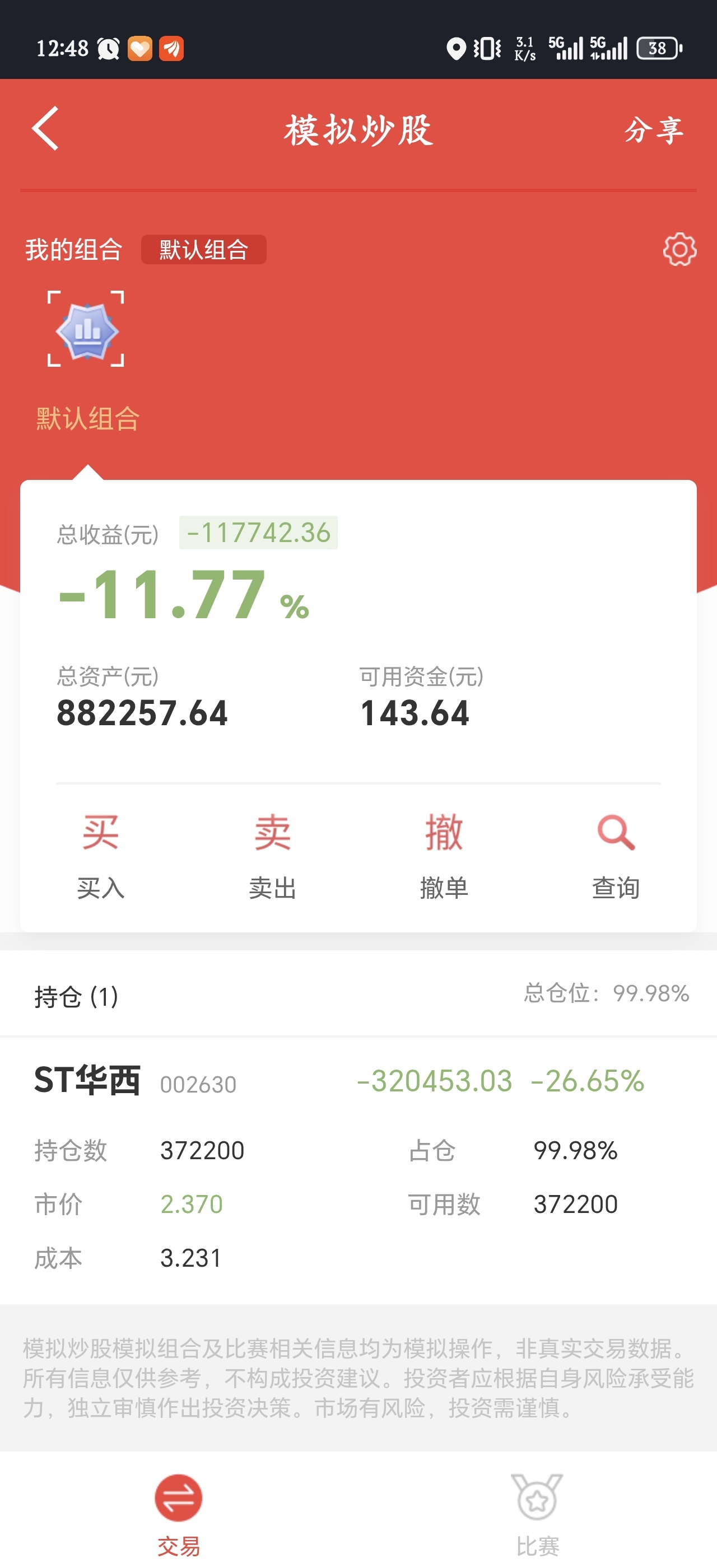 $ST华西(SZ002630)$ 连我的模拟仓都受不了,嘛个蛋,再来两个跌停让我看看你的实力好嘛,实在不行我再开一个千万的账户陪你继续磨