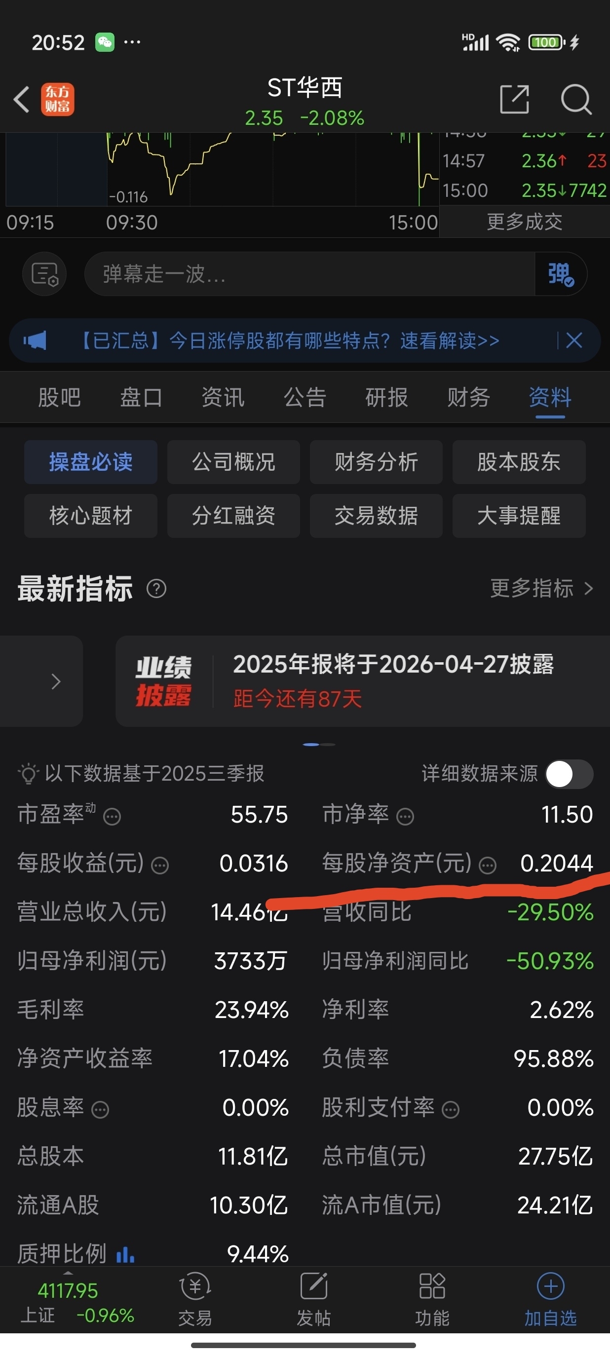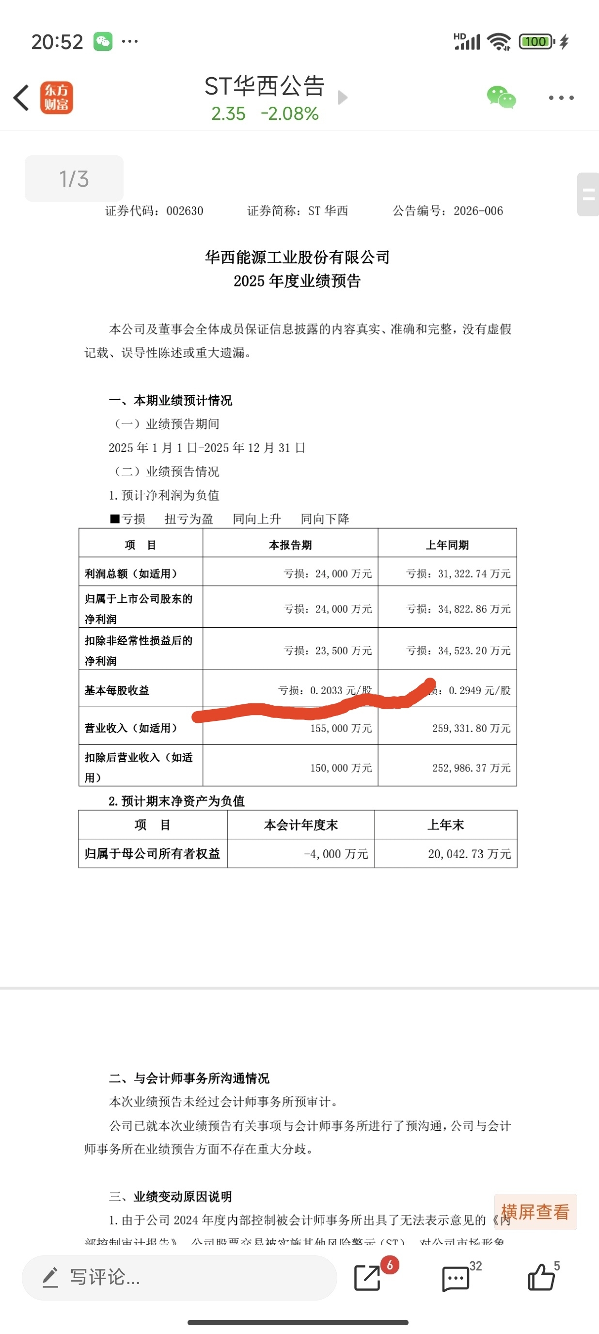 看错了,亏2.4亿净资产就是负值了