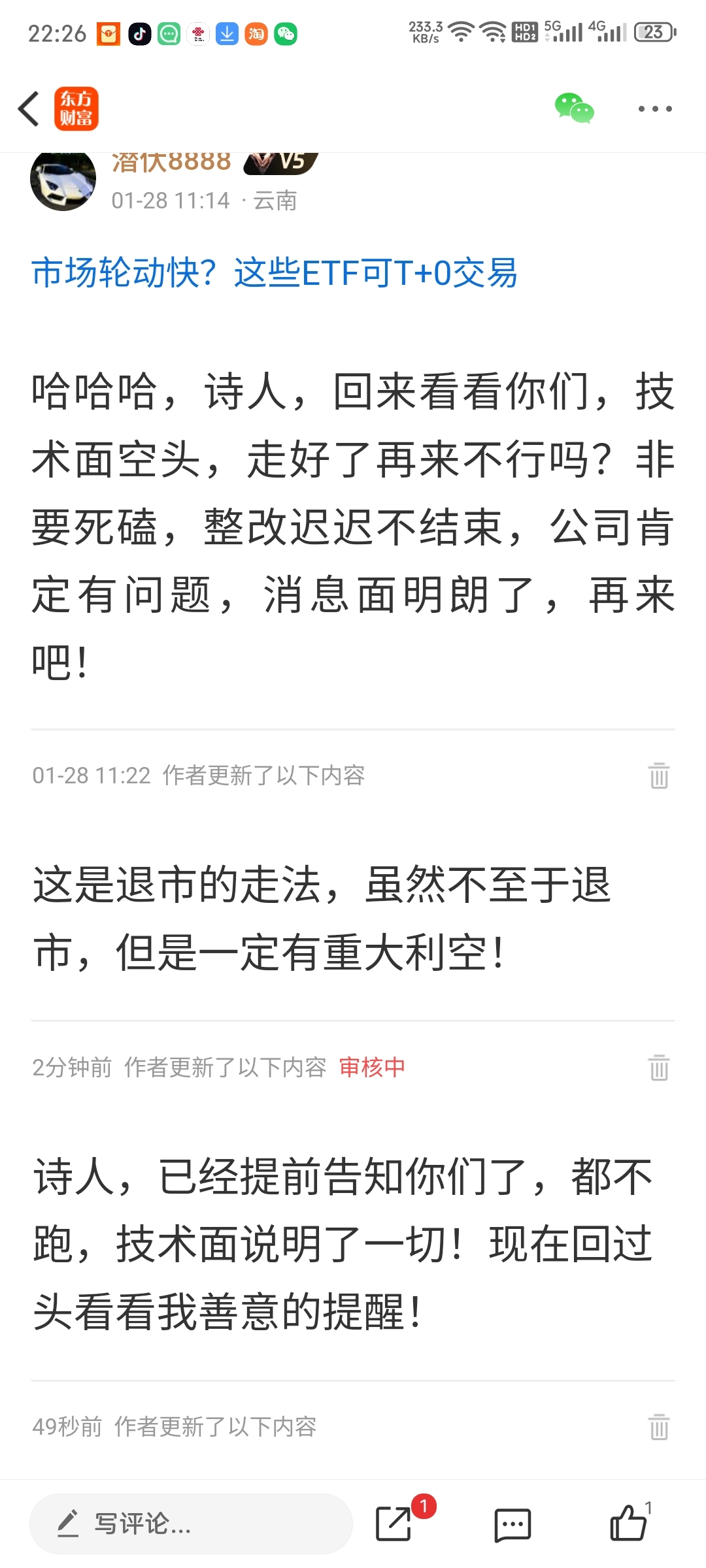 温馨提示: 1.根据《证券法》规定,禁止编造、传播虚假信息或者误导性信息,扰乱证券市场;2.用户在本社区发表的所有资料、言论等仅代表个人观点,与本网站立场无关,不对您构成任何投资建议。用户应基于自己的独立判断,自行决定证券投资并承担相应风险。《东方财富社区管理规定》
