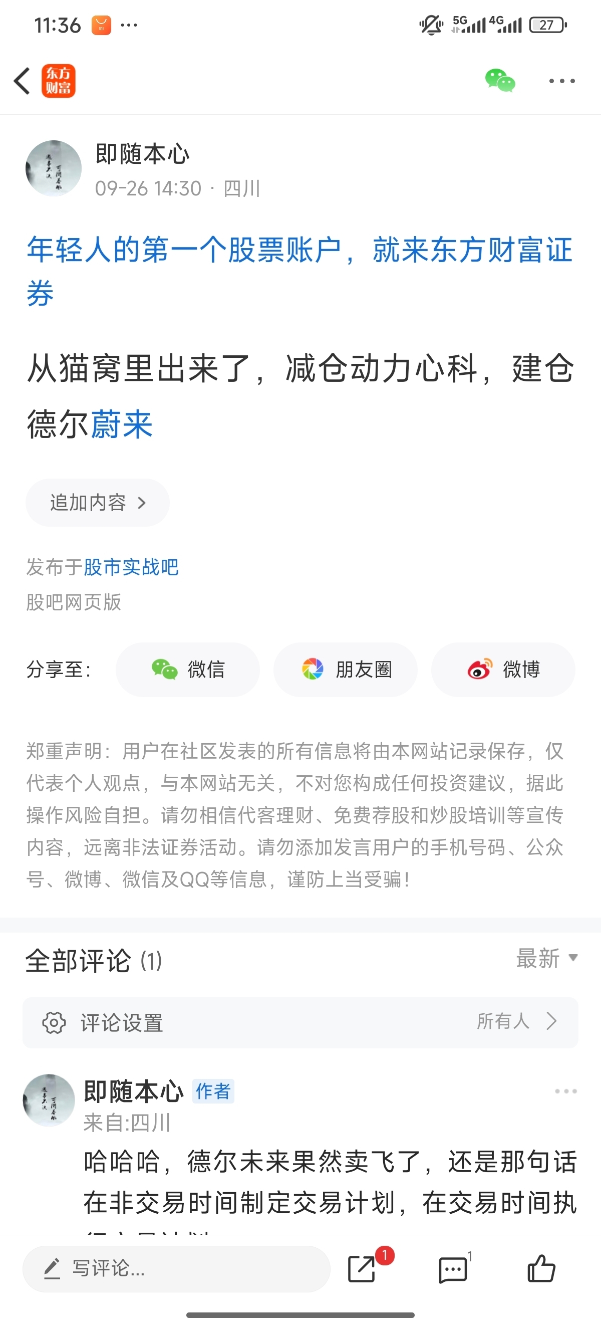 温馨提示: 1.根据《证券法》规定,禁止编造、传播虚假信息或者误导性信息,扰乱证券市场;2.用户在本社区发表的所有资料、言论等仅代表个人观点,与本网站立场无关,不对您构成任何投资建议。用户应基于自己的独立判断,自行决定证券投资并承担相应风险。《东方财富社区管理规定》