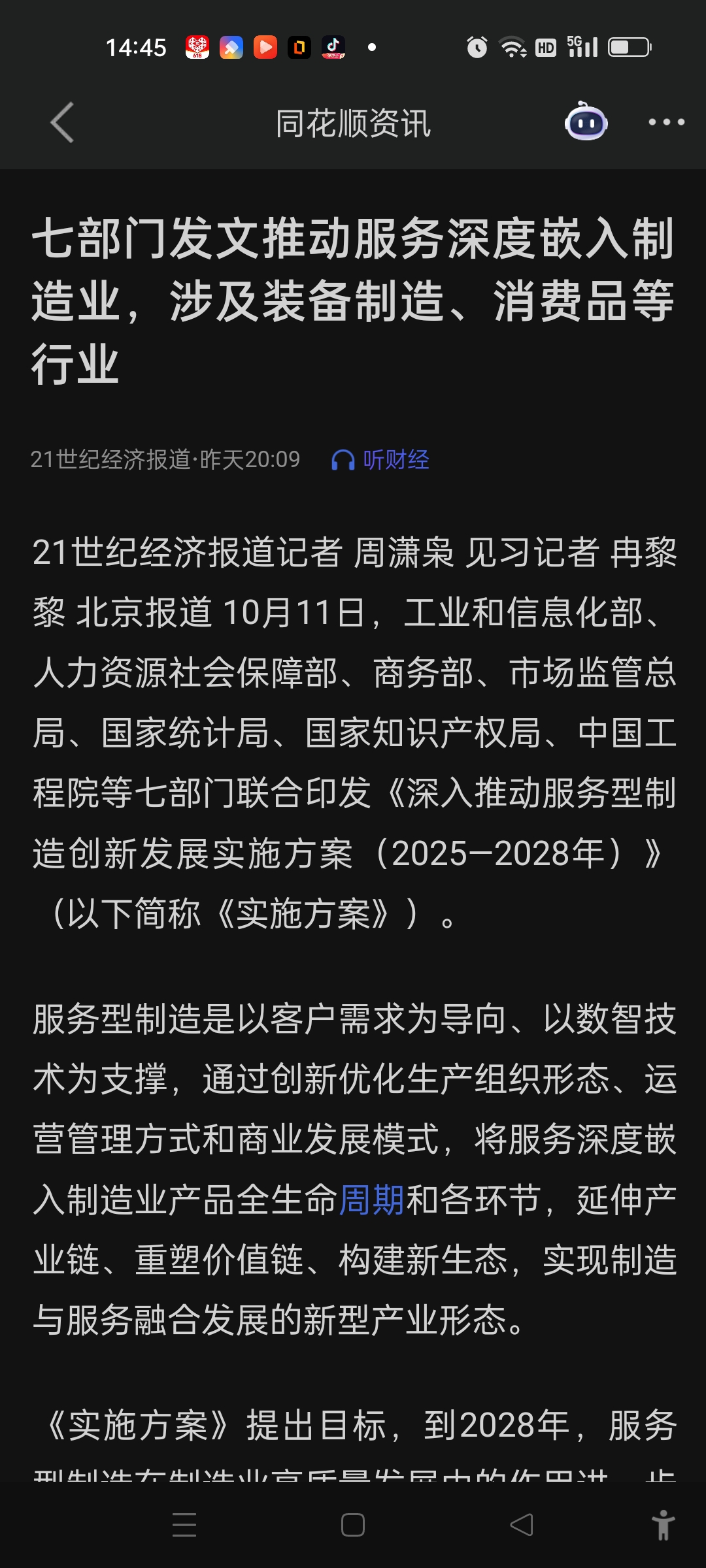$德尔未来(SZ002631)$ 服务型制造利好来了