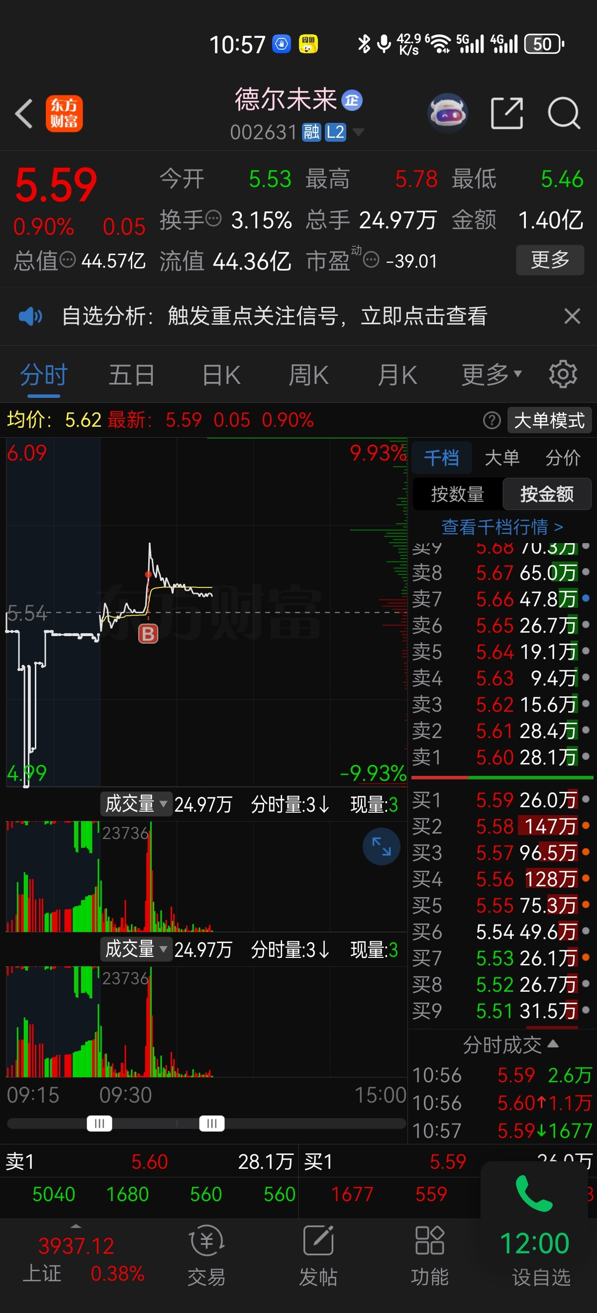 $德尔未来(SZ002631)$ 完了,被挂在山顶了