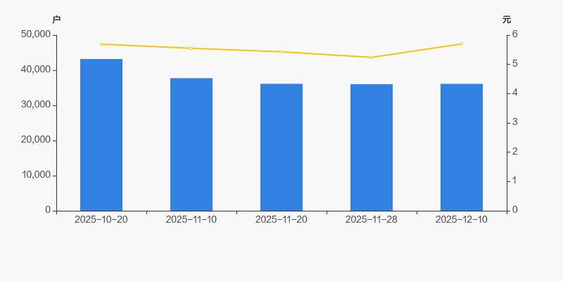 2025年10月20日至今,公司股东户数显著下降,区间跌幅为16.37%。2025年10月20日至2025年12月10日区间股价上涨0.18%。