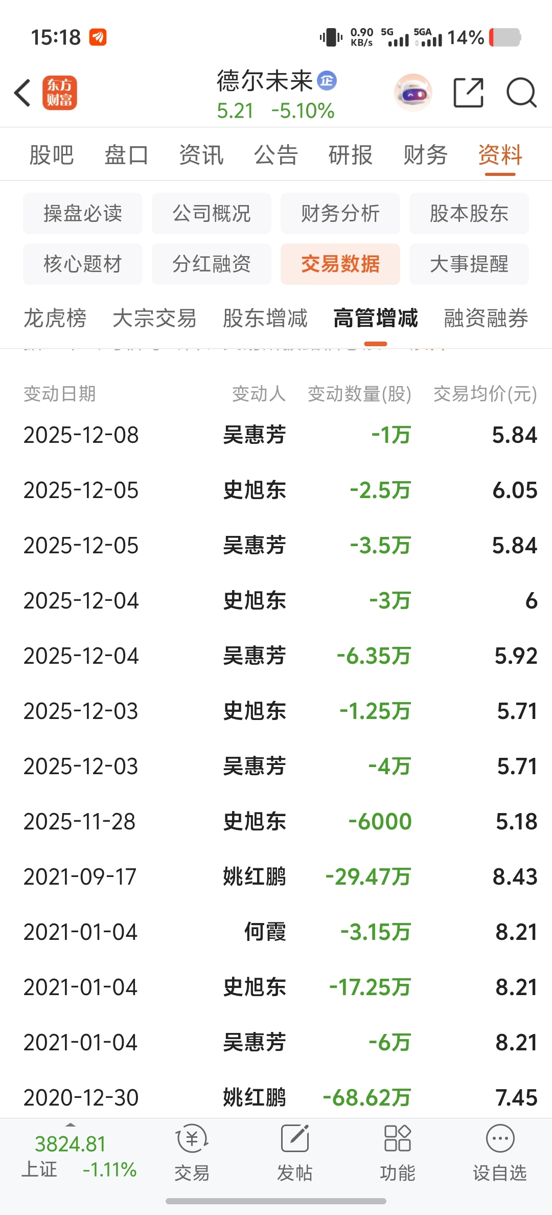 $德尔未来(SZ002631)$ 这种票买它干什么,这么多高管都是在卖,有谁增持了