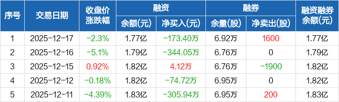 德尔未来:融资净偿还173.4万元,融资余额1.77亿元(12-17)