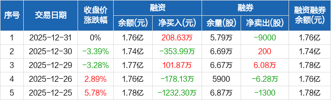 德尔未来:融资净买入208.63万元,融资余额1.76亿元(12-31)