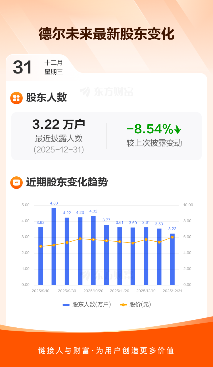 德尔未来:截至12月31日最新股东户数3.22万户,较上期减少8.54%