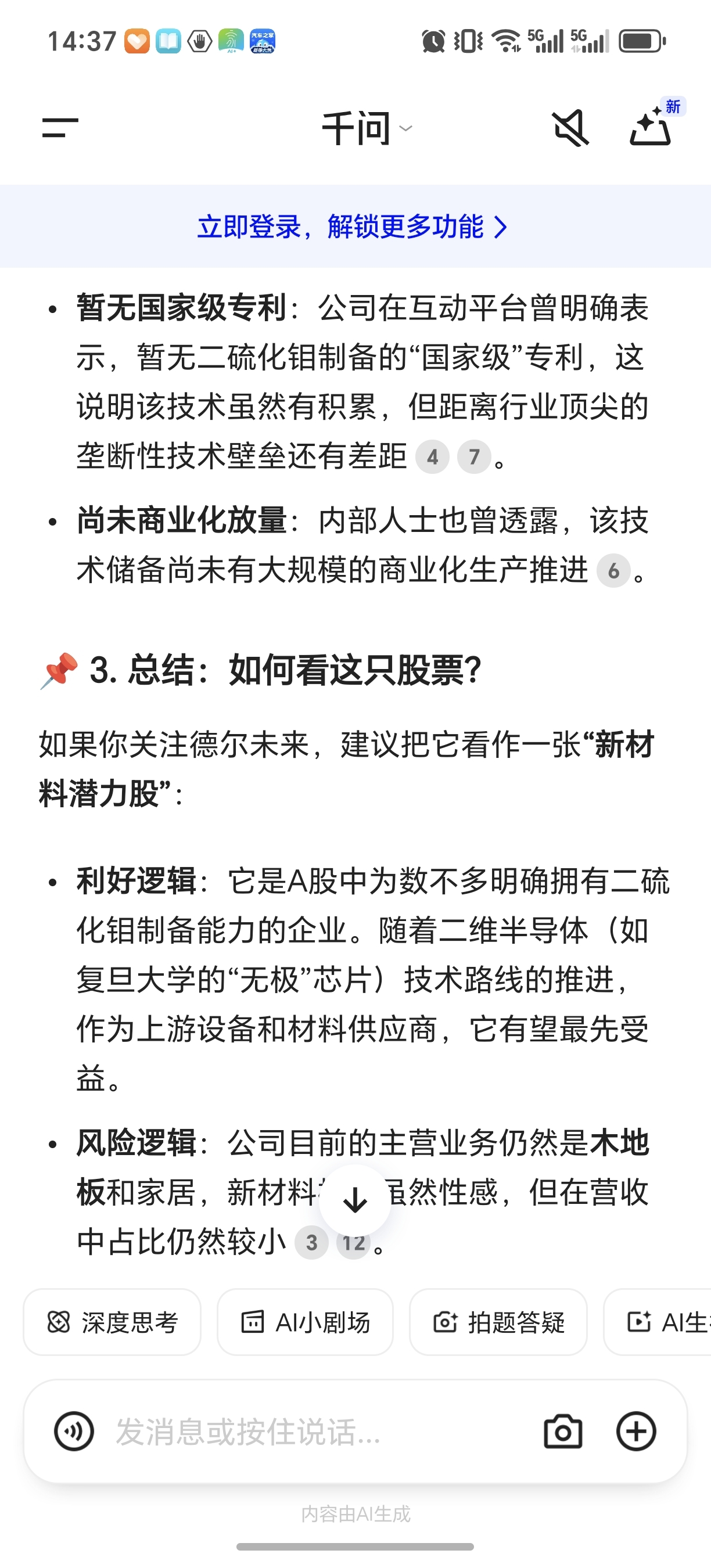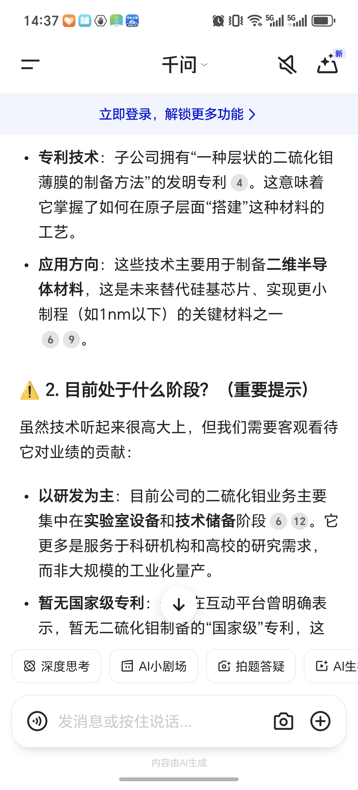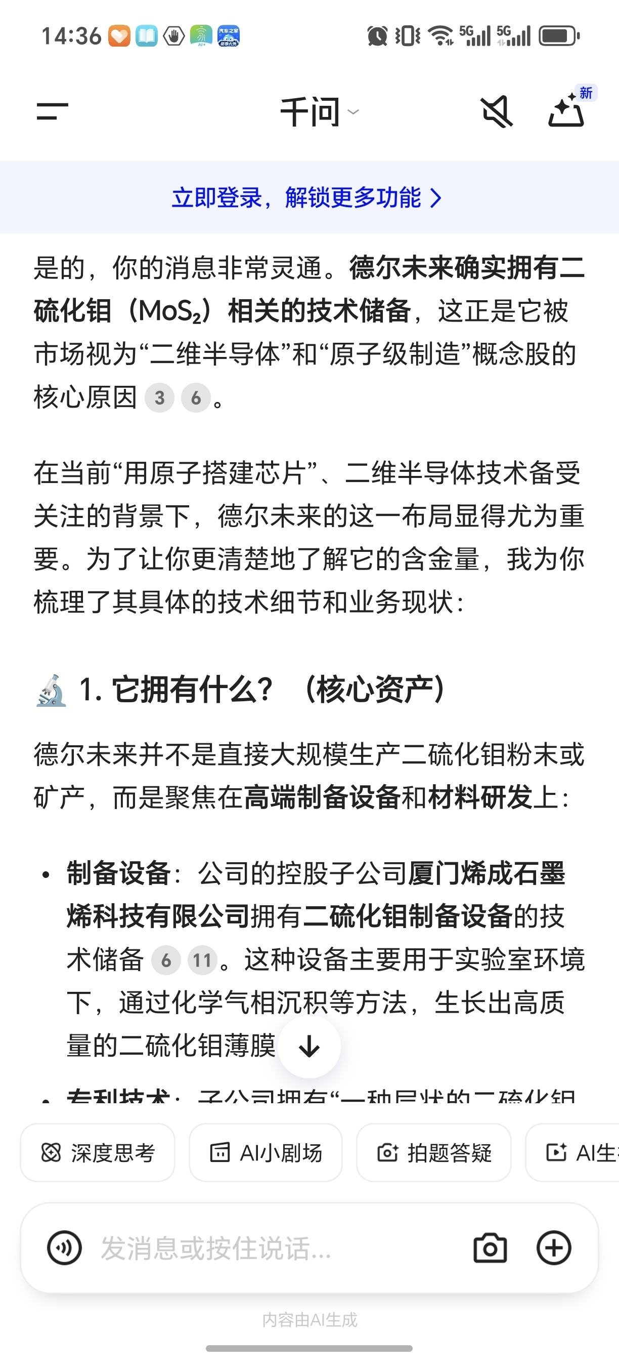$德尔未来(SZ002631)$ 拥有二硫化钼相关技术储备