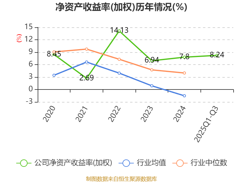 盈利能力方面, 2025年前三季度公司加权平均净资产收益率为8.24%,同比上升1.73个百分点。公司2025年前三季度投入资本回报率为6.93%,较上年同期上升0.83个百分点。