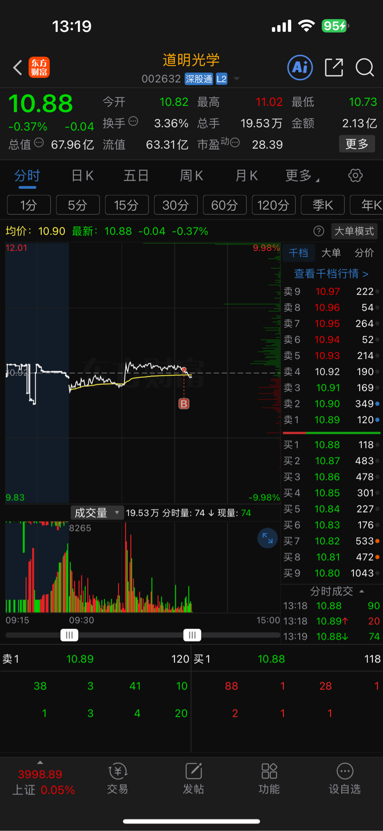 $道明光学(SZ002632)$ 都怪我,买崩了