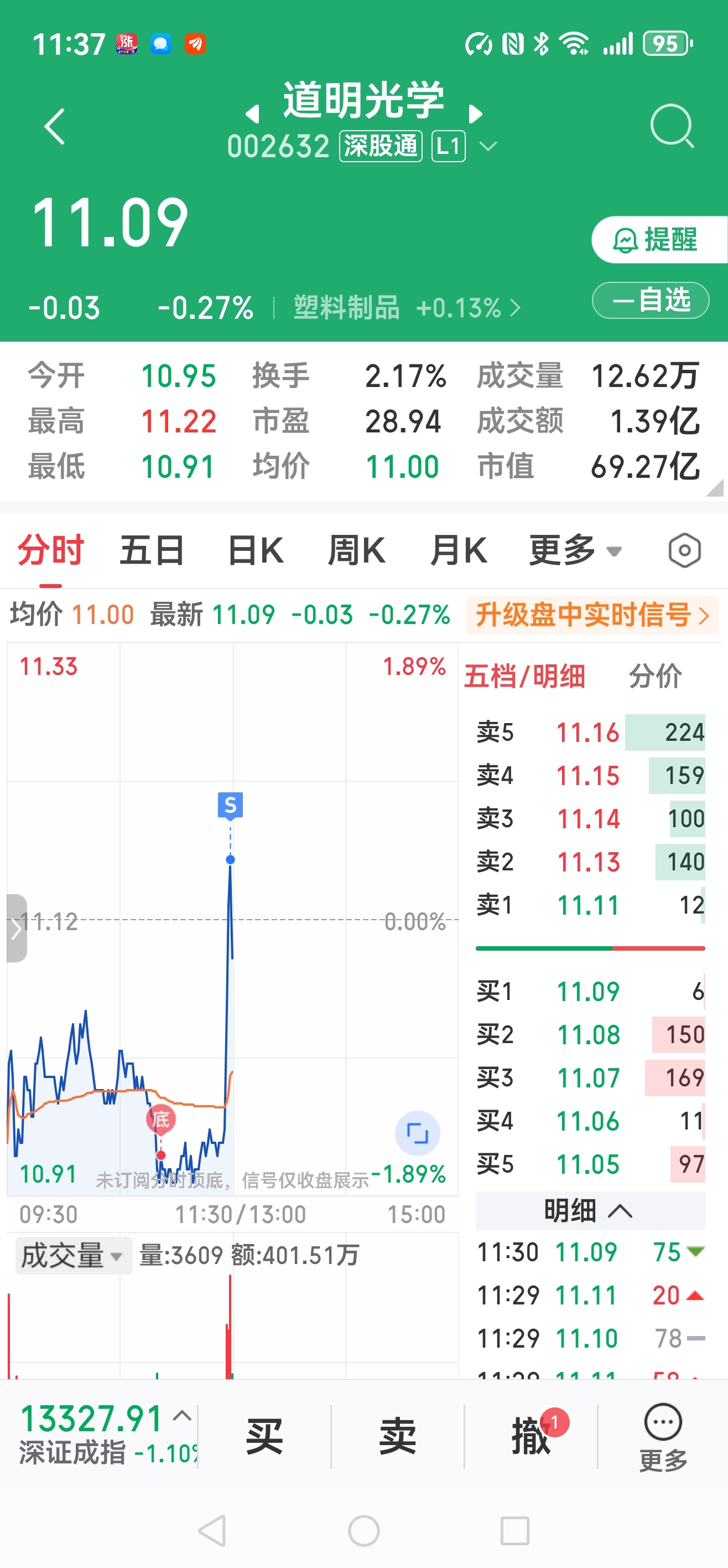 $道明光学(SZ002632)$ 挂着出去了,下午再冲亏大了