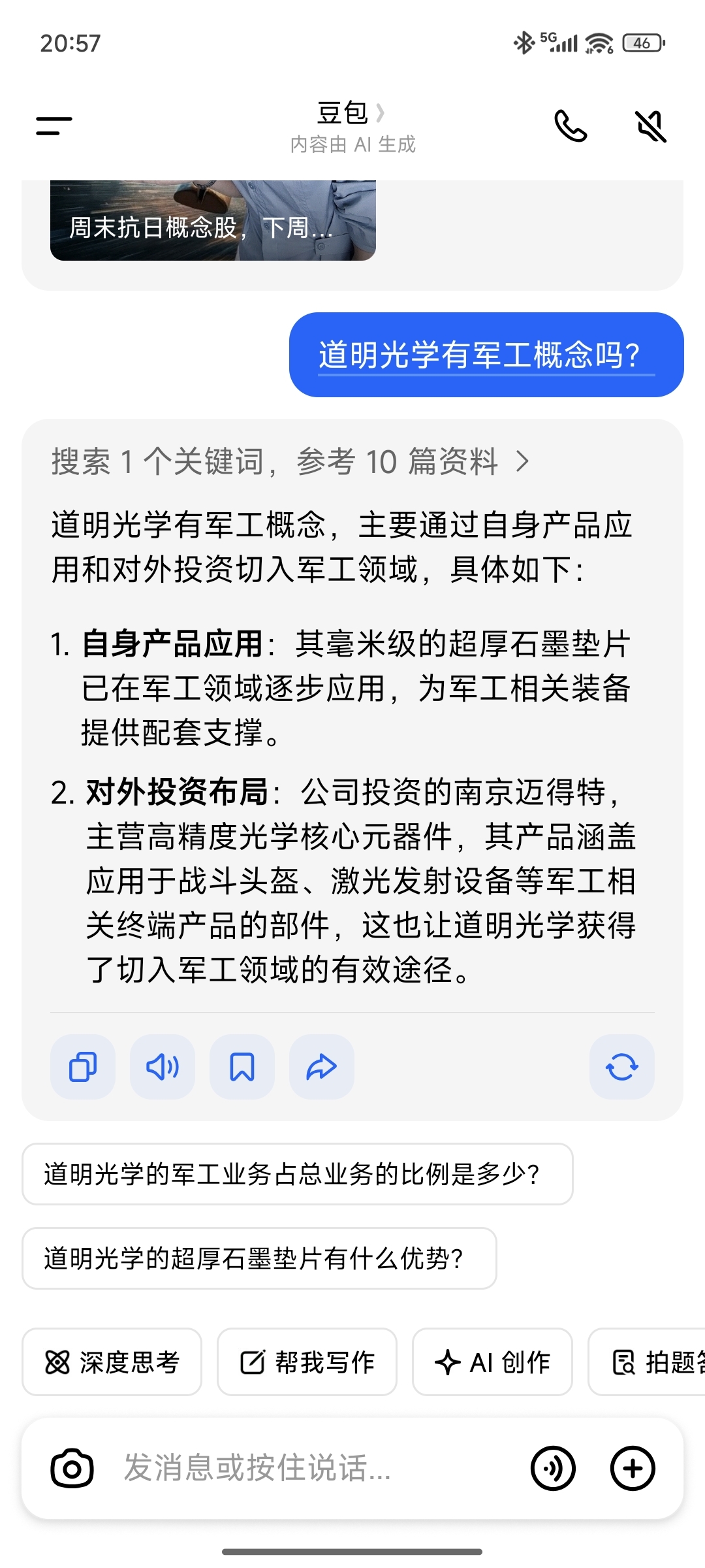 $道明光学(SZ002632)$ 哈哈,你也有军军概念!太牛了!