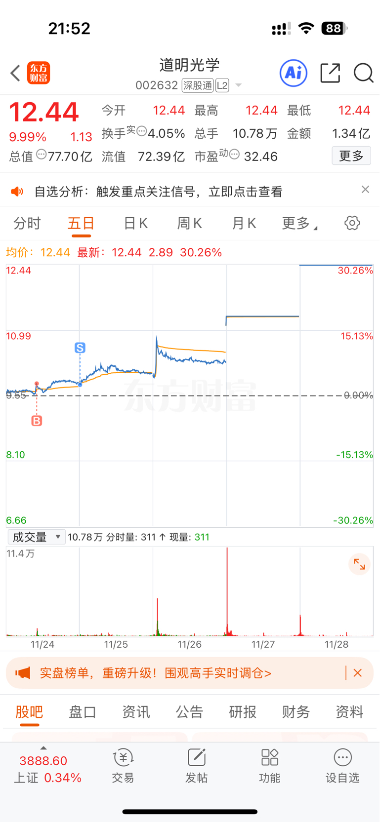 $道明光学(SZ002632)$ 错过了翻倍的九牧王,现在又错过了你,心里这个难受啊