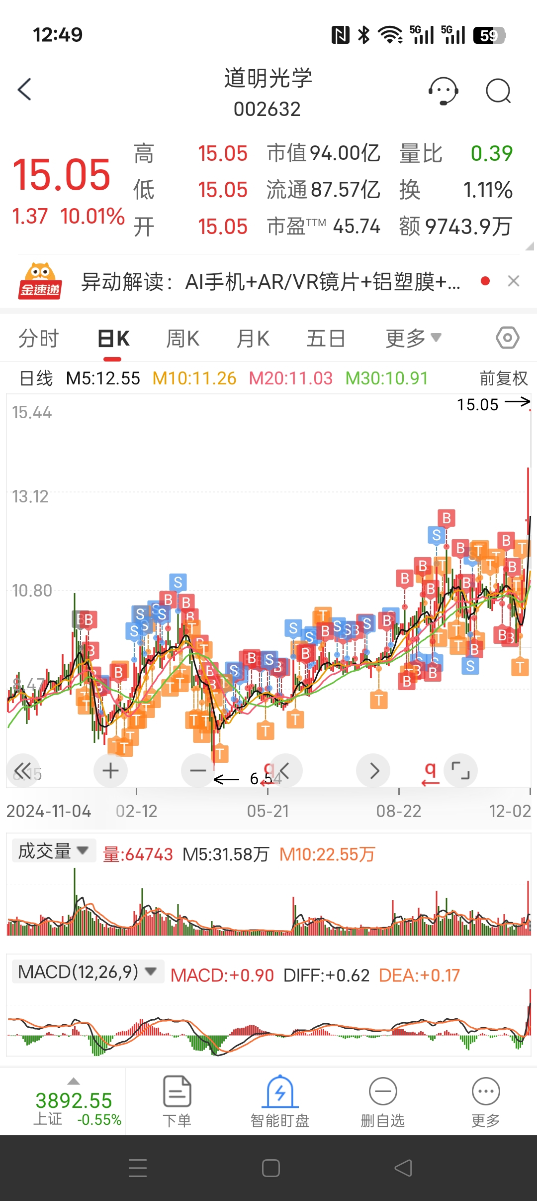 $道明光学(SZ002632)$ 说跌停的出来走两步