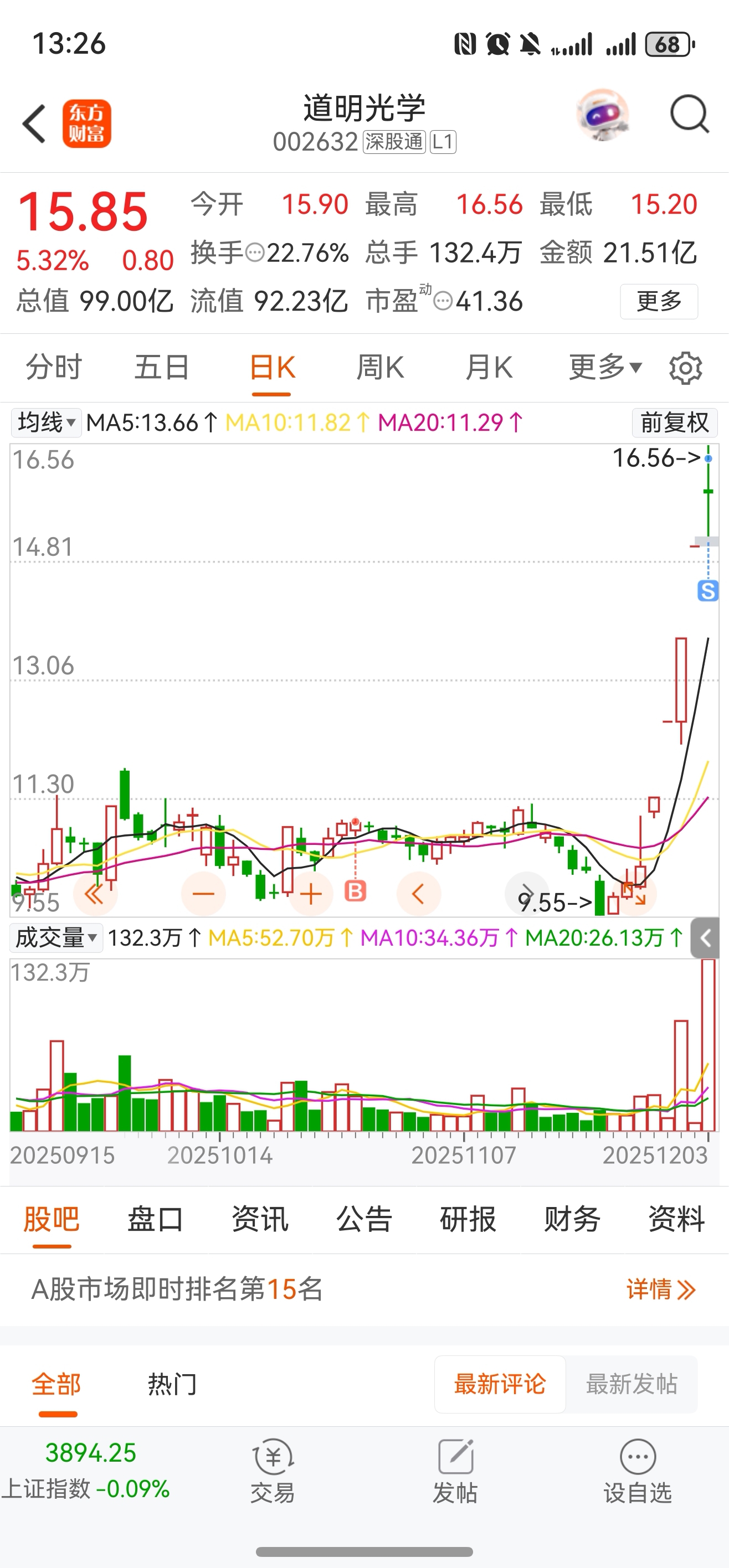 $道明光学(SZ002632)$ 感谢主力解救,第一次买到牛股,走了留下的发财啊