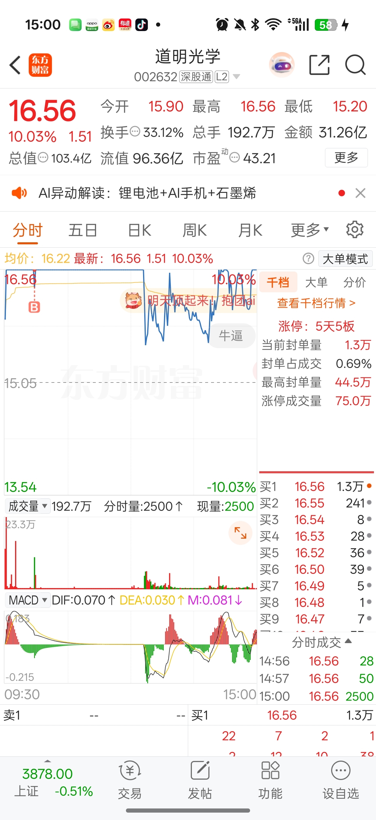 $道明光学(SZ002632)$ 一切尽在不言中,向多头致敬