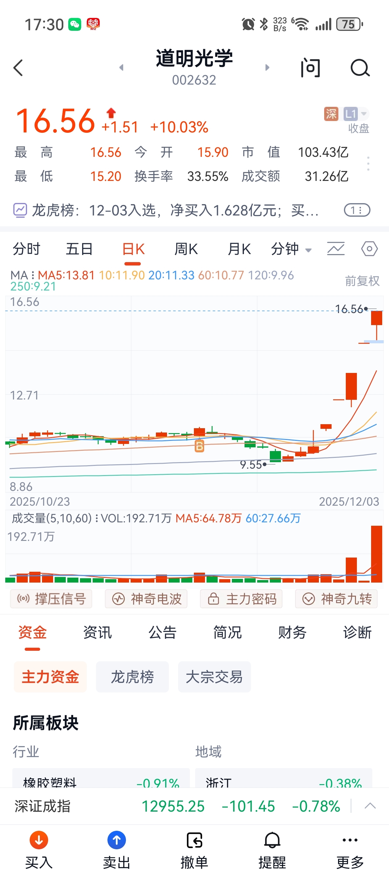 $道明光学(SZ002632)$ 可惜好像买的人不多