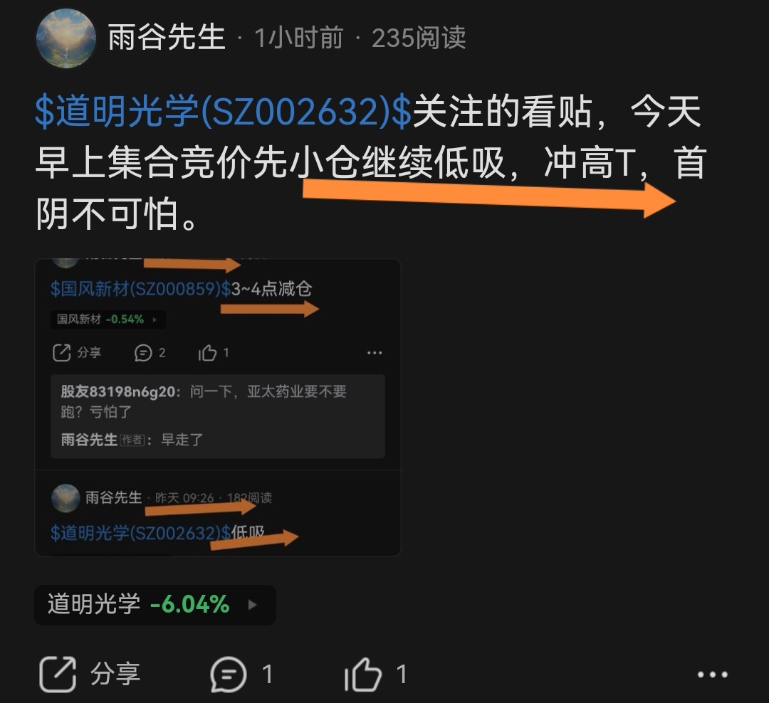 $道明光学(SZ002632)$ 关注的股友看贴,昨天早上低吸,今天早上继续,重仓T。