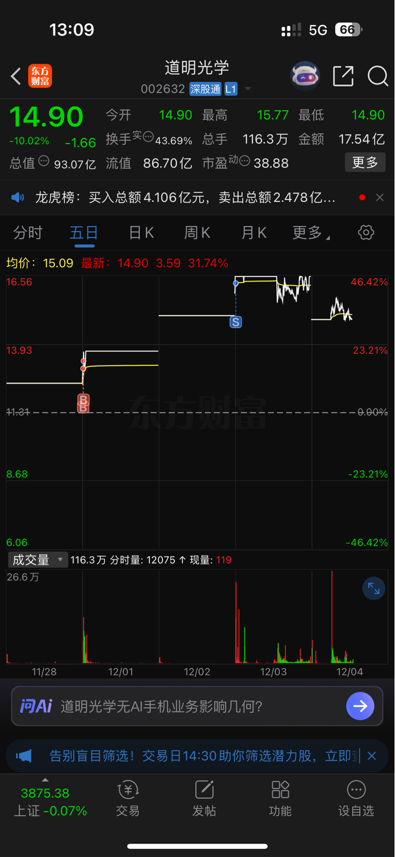 $道明光学(SZ002632)$ 昨天还以为卖飞了