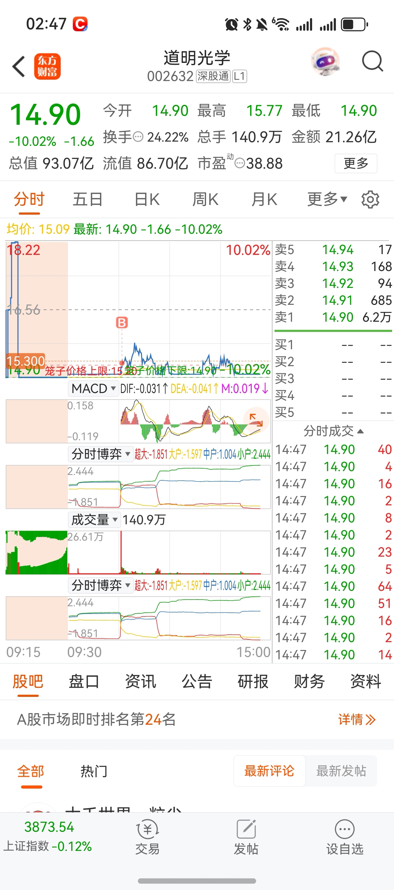 $道明光学(SZ002632)$ 明天10个点准备好了手痒